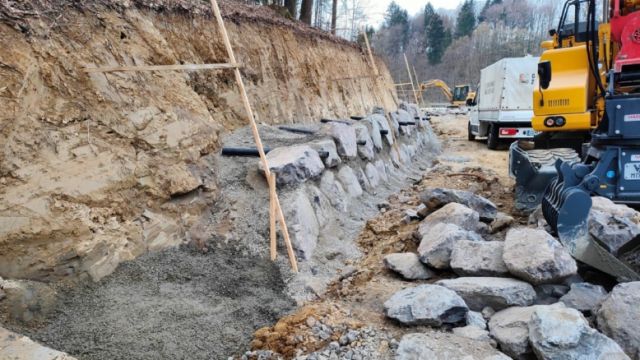 Ob podpisu pogodbe jim je investitor predal zemljišča, ki so potrebna za izvedbo projekta. “Na tem območju tako gradimo dva kamnita zidova v skupni dolžini 116 metrov, eden meri 81 metrov, drugi 35. Gradnjo izvajamo s kamnom, ki ga dobavljamo iz kamnoloma Kloch v Avstriji. Dela potekajo vse delovne dni v tednu in ob sobotah,” pravi Metka Blaznik.