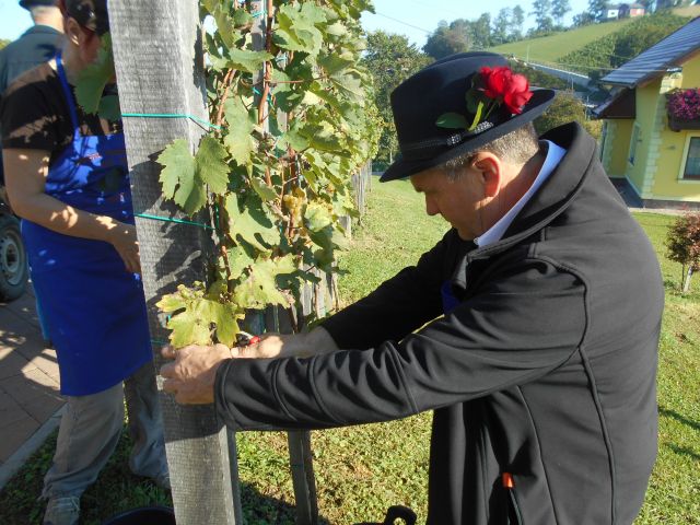 To nedeljo, 25. septembra 2016 je bilo na Sveti Ani spet veselo, saj smo pričeli s praznovanji Postičevih dnevov, ki jih zaradi ohranjanja bogate zgodovine vinogradništva prirejamo zdaj že peto leto zapored. Člani društva vinogradnikov in ljubitelji žlahtne kapljice so se zbrali na trgatvi po Postičevi vinogradniško učni poti, kjer je posajenih 83 različnih sort trt. Po končani trgatvi je sledil prikaz stiskanja grozdja na tradicionalen način.