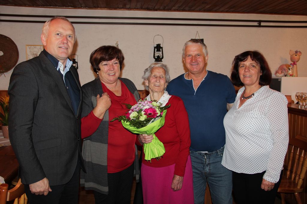 Ob njenem prazniku jo je obiskal tudi župan Občine Sveta Ana, Silvo Slaček. Ob izročitvi simboličnega darila ji je zaželel še obilo zdravih in srečnih let. Slavljenka, ki za svoja leta izgleda več kot odlično je bila vesela obiska.