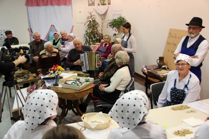 V nedeljo, 11. januarja 2015 smo v avli Antona Fašinga znova obujali stare običaje. Prireditev je nastala na pobudo in v organizaciji Frančeka Ruhitla, ki je pri Sveti Ani zaslužen za ohranjanje starih običajev in prikaz le-teh mlajši generaciji. Nastopilo je veliko število naših občanov, ki so z nami gledalci z velikim veseljem podelili kakšno zgodbo iz bogate zakladnice svojega življenja. Sodelovali so: »šoštarja« - čevljarja Andrej Kapl in Franc Horvat, »žnidar« - krojač Janko Ornik, predilji Fefika Bratuša in Rozika Jug, »korbmohar« - izdelovalec košar Franček Ruhitel st., muzikanta Jožef in Ludvik Urbanič, »pušlmoharca« - izdelovalka šopkov Ida Zadravec, kulturno dogajanje nekoč sta nam predstavili Olga Župec in Marija Ferk, »Johan in Zefa« (Marija Kaučič in Srečko Bauman), pa sta nam na šaljiv način predstavila letni obračun med gospodarjem in »vajncarjem« - viničarjem. Za glasbeno popestritev pa so poskrbele ljudske pevke (Cvetka Kraner, Betka Urbanič, Frančika Lasetcky, Majda Vrbnjak Jožica Ornik, Anica Bauman in Verica Zemljič), ki so ob prepevanju ljudskih pesmi prikazale tudi luščenje bučnega semena. Prireditev sta povezovala Franček Ruhitel in Aleksandra Šnajder.