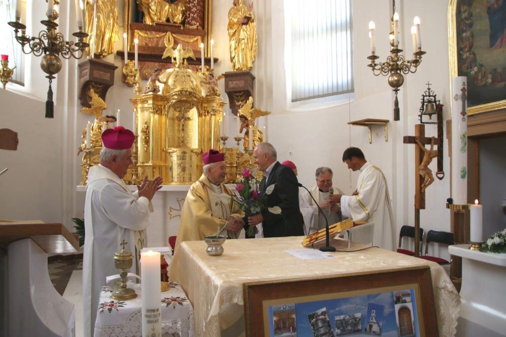 V župnijski cerkvi Sv. Ane v Slovenskih Goricah je, v nedeljo, 28. junija, potekala slovesnost, na kateri so počastili bisernomašni jubilej tamkajšnjega upokojenega župnika Jožefa Horvata rojenega 1930. Leta, v Bogojini. Sv. mašo je ob sodelovanju naddekana in župnika Marina Bezgovška, domačega župnika Tončeka Frasa, župnika iz Sv. Jurija ob Ščavnici Boštjana Ošlaja, upokojenega župnika iz Benedikta Ivana Zajnkoviča ter diakona Janeza Kurnika, daroval pomožni škof dr. Jožev Smej, ki je v pridigi orisal življenjsko pot jubilanta in mu čestital za njegov bisernomašni jubilej (60 let). Čestitke in zahvalo je jubilantu namenil tudi sedanji župnik Tonček Fras, ki mu je zaželel trdnega zdravja. V imenu župnijskega sveta mu je, ob izročitvi priložnostnega darila, čestital ključar Drago Ruhitelj, v imenu občine Sveta Ana pa župan Silvo Slaček. Ob tej priliki je škof blagoslovi nov krstilni kamen. Slovesno sv. mašo je s petjem popestril župnijski cerkveni pevski zbor. Kakor je navada, so članice Društva kmečkih žena Sv. Ana, s pomočjo pridnih gospodinj, pripravile bogato pogostitev vseh udeležencev tega slavja.