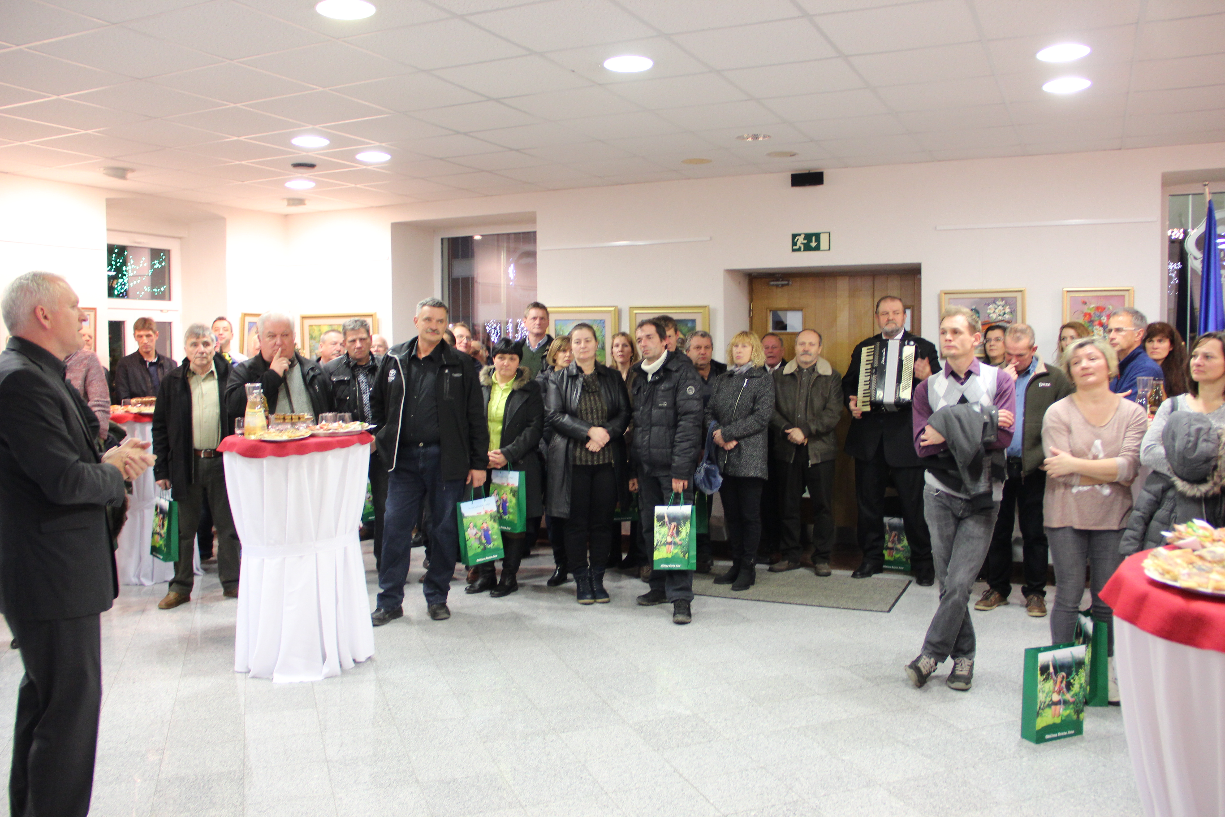 Župan Silvo Slaček je v avli Antona Fašinga sprejel občinske svetnike, člane nadzornega odbora, člane odborov ter komisij, predsednike društev, podjetnike, nosilce dopolnilnih dejavnosti in druge, ki prispevajo k razvoju Občine. Prisotnim se je zahvalil za uspešno sodelovanje in jih povabil k le-temu tudi v prihodnje. Izrekel je tudi lepe želje ob prihajajočih praznikih in vse dobro v novem letu 2018. Povabljeni so v zahvalo dobili majhno pozornost in bili pogosteni z dobrotami iz pod rok Društva kmečkih žena in deklet Sveta Ana. Prav tako pa so lahko okušali izvrstno penino Gostilne Eder-Kramberger in vino vinogradništva Majcenovič.