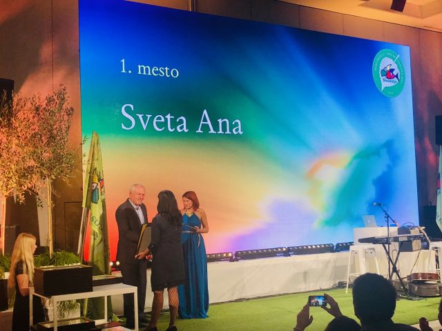 Občina Sveta Ana je prejela priznanje za 1. mesto v kategoriji trška jedra v okviru projekta Moja dežela - lepa in gostoljubna