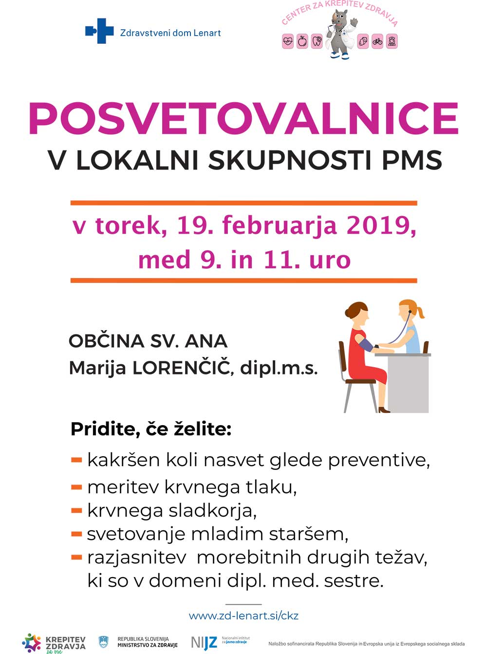 Vabljeni v torek, 19.februarja 2019, med 9. in 11. uro.