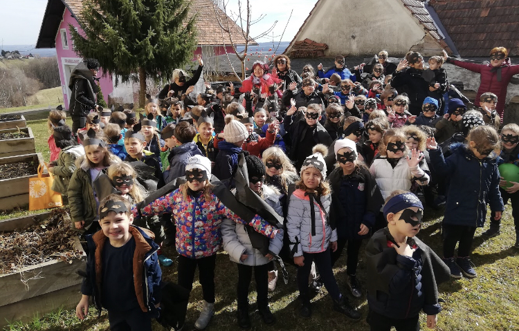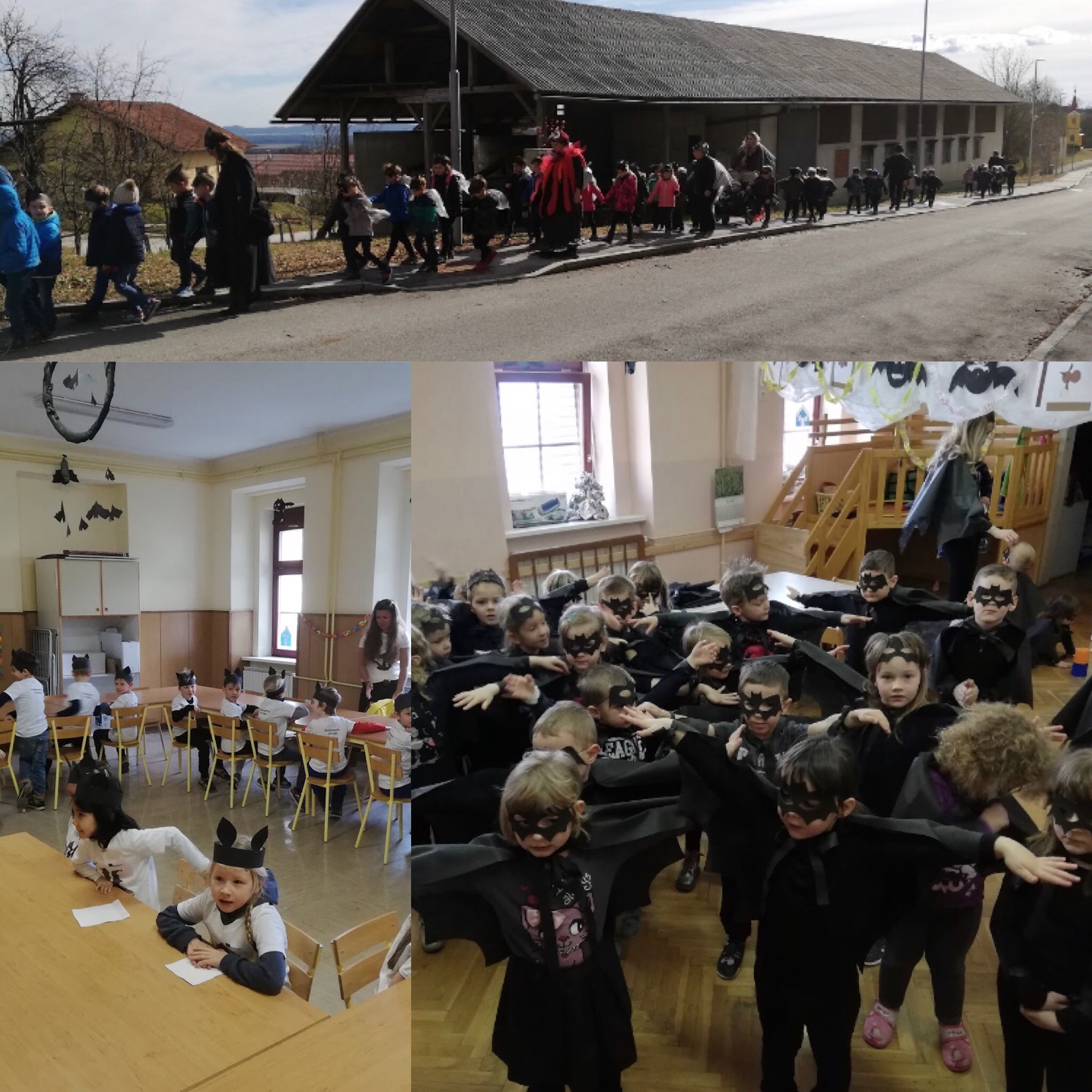 Skupaj s sodelujočimi šolami iz avstrijskega Stradna, Maribora in Svete Ane, smo imeli prvo skupno srečanje na pustni torek. Ker so rdeča nit tega projekta netopirji in vulkani, je bila tudi pustna tematika takšna.