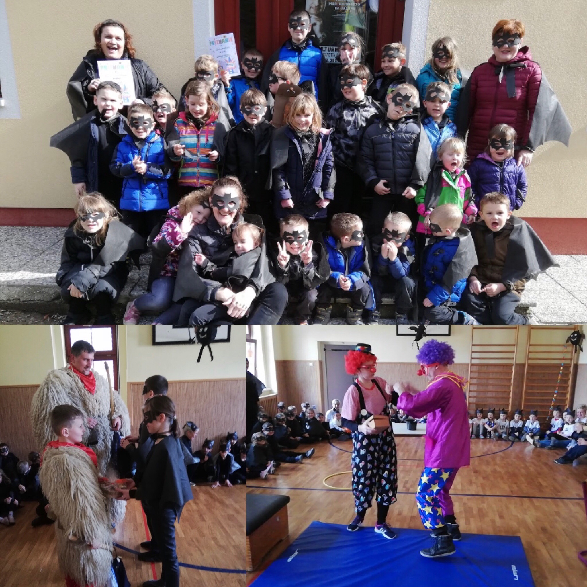 Vsi skupaj smo se zbrali v telovadnici. Najprej je imel gospod ravnatelj Boris Mlakar uvodni govor, nato pa sta prišla glasna kurenta. Predstavila sta svojo masko in zelo smo bili veseli. Za nekatere je bil to poseben dogodek, saj so prvič videli kurenta. Kurenta sta se nato poslovila z glasnim zvonjenjem in prišla sta dva klovna. Klovna sta odigrala smešno predstavo, nato pa smo odšli na pustno povorko mimo trgovine Golob, do kapele in nazaj. Potem smo podelili priznanja za naj netopirje in ob 11.00 uri so gostje odšli.