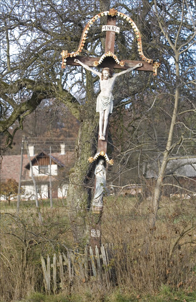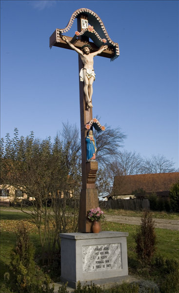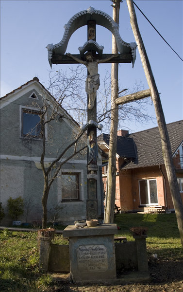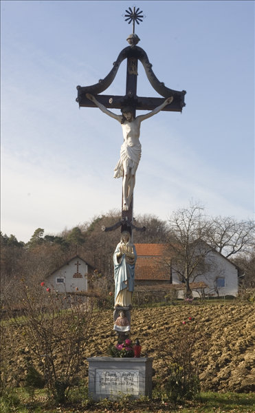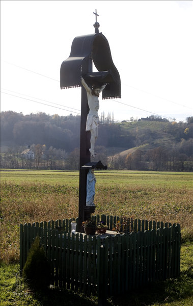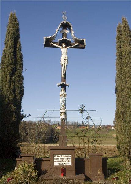 Križ je v lasti Olge Župec. Na mesto, kjer stoji danes, so ga postavili leta 1946 (19 FAŽ 46), pred tem je stal na drugi strani ceste, ni pa znano od kdaj. Postavili naj bi ga v zahvalo alo zaradi zaobljube. Danes lahko na podstavku preberemo posvetilo: Premisli popotnik kaj zate sem storil, zate sem moral križ nositi, zate na njem umreti.