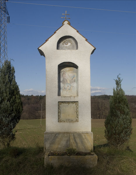 Znamenje z nišo stoji na zemljišču, ki je v lasti družine Klobasa. Kapelico naj bi dali postaviti Naivirtovi in Kranerjevi (predniki družine Klobasa) leta 1897, ker naj bi na tem mestu strašilo. Prikazoval se je duh starejše ženske, oblečeno v črno, ki je prisedala na vozove, ki so vozili tod mimo in kasneje izginili; po postavitvi kapelice se ni več prikazovala. Na kapelici so vidne letnice 1897, 1943, 1997 (pri slednjih dveh gre za obnove) ter začetnice N.L.M. Nazadnje so jo obnovili vaščani. Posvečena je sv. Trojici, na levi strani je naslikano sv. Srce Marijino, desno pa sv. Srce Jezusovo.