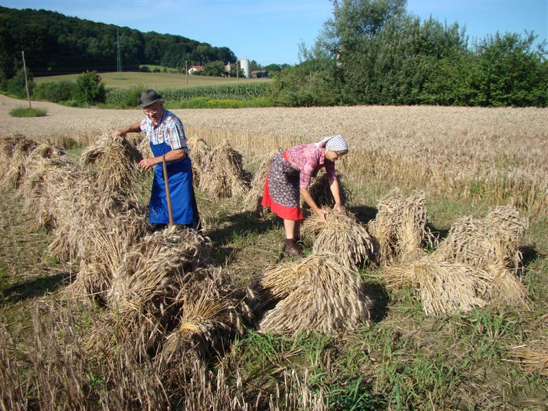 Srp kaže na vsem slovenskem območju precej enako obliko, ki se je izoblikovala nekako v 13. stoletju, kasneje ga je izpodrinila kosa. Praviloma so s srpi žele le ženske. Na Slovenskem so ženice žele na dva načina, najpogosteje so žele v pest, potem pa prgišče položile v posode. Ta način žetve je bil zelo zamuden, zato se je kasneje uveljavil način, kjer so ženice s srpi zajemale večje snope. Tudi žetev je veljala za družabni dogodek, in je običajno potekala vzajemno med več kmeti. Veselju ob koncu žetve je običajno sledila južina s tipičnimi domačimi dobrotami.