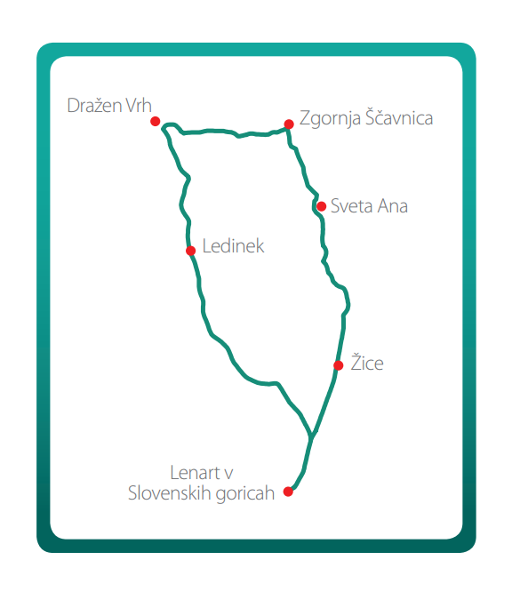 Je krožna kolesarska pot, ki se prične v Lenartu. Pot vodi po regionalni cesti R II-433, mimo Žic do središča Svete Ane, nato se smer vožnje nadaljuje v dolino Ščavnice v smeri Dražen Vrha, kjer se ponovno priključi na regionalno cesto R II-433, pot vodi skozi Ledinek nazaj do Lenarta.